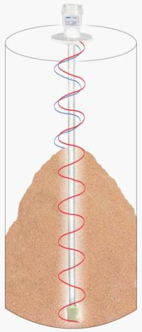 寬頻段微波沿著探桿發射,接收 多個回波信號進行距離測算